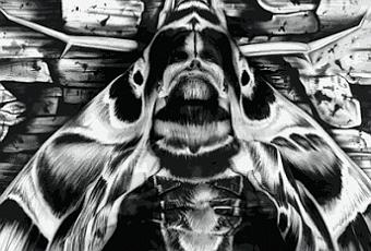 L’artiste américain,Paul Roustan réalise une nouvelle oeuvre mêlant peinture et « body painting ». Ce papillon « Sphinx tête de mort » tout droit sorti du Silence des Agneaux a nécessité cinq heures de travail pour l’arrière plan et sept pour la peinture sur corps. Cet ancien illustrateur pour le magazine Playboy, utilise principalement un aérographe, son travail est régulièrement primé.