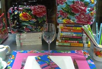 L’ouverture du ‘festival franco-chinois » par le Consul Général de France qui conclu son discours en invitant le public à « parler français, lire en français, s’habiller français et décorer français (yes !) » était suivie d’une rencontre co-animée avec Isabelle, la créatrice de Kiwo Créations, au cours de laquelle nous avons présenté notre travail et son inspiration puisque nos deux marques sont marquées par la Chine et l’Asie. L’occasion de brandir des thermos émaillés d’origine ou des vestes Miao brodées et d’expliquer que tout c’est ça qui m’inspire : la culture chinoise, le « da hong » (rouge chinois) , les qi pao (robes chinoises traditionnelles), les noeuds, les biais, les fleurs, et que sans mon expatriation en Chine je serais sûrement encore en train de marketer des yaourts à Paris. « Because when I was a kid, I didn’t dream of becoming a designer. I definitly wanted to be a writer. But just in case, I also studied business ».