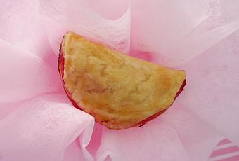 Garnir chaque cercle d'une cuillère à café de purée de pommes et d'une demie cuillère à café de purée de framboises. Replier la pâte pour former des chaussons puis souder les bords avec un peu d'eau froide.