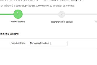 - Choisissez l’onglet « Mes Scénarios » et nommez le scénario (par exemple Allumage automatique 1).