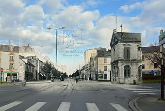 Cette carte postale montre le faubourg Cérès, aujourd'hui avenue Jean-Jaurès. La vue est prise au carrefour avec le boulevard Carteret qui est à droite (le boulevard Jamin est à gauche et n'est pas visible sur la vue).