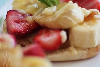 3)Répartir les bananes et les fraises sur la pâte. Saupoudrer de cassonade.
