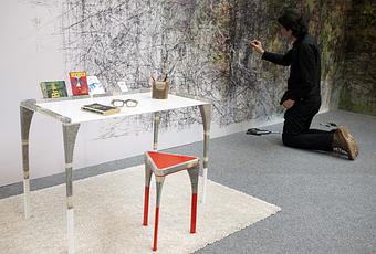 Elles imaginent alors une collection où le livre est matière première, travaillée comme le bois le papier est alors sculptable à volonté. De cette idée va naitre un bureau Le baron, des lunettes Le Capitaine, la lampe l’Ensorceleuse, le tabouret Le Dandy et le pot à crayon l’Arlequin.