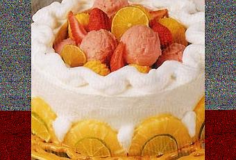 - Au moment de servir, garnir la croûte de boulet de sorbets et de chantilly. Décorer des fraises restantes, des tranches d'ananas, et de rondelles de citron.