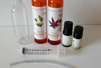 Je souhaitais me créer un soin nutritif, équilibrant (pour cheveux ayant tendance à graisser rapidement), fortifiant et stimulant. Pour cela, j’ai eu besoin de quatre ingrédients pour un prix d’environ 22 euros pour 200mL de produit, plus un flacon, son embout et une pipette graduée. Il faut compter environ 25 euros avec tous les ingrédients et contenants pour vous confectionner ces 200mL.