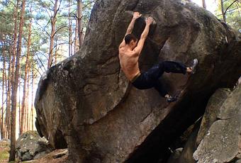 Notre tout nouveau champion de France de bloc dans Misti 8c, une des plus dures traversées bleausardes avec des prises de pieds minuscules.