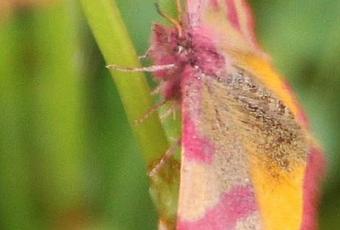 - Les ailes postérieures sont jaune-orangé avec une zone sombre à la marge postérieure.