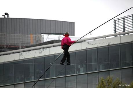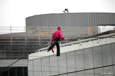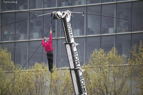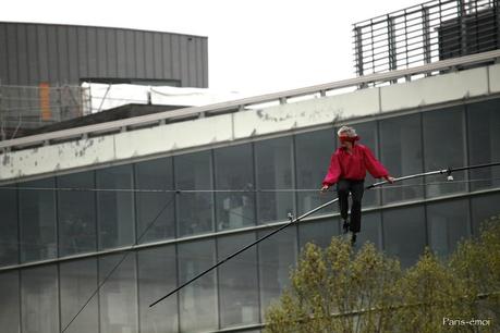 Voilà un impressionnant challenge qu'a relevé le funambuliste Denis Josselin, 56 ans, le dimanche 06 Avril, à l'occasion de la fête du Port d'Austerlitz.