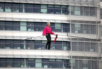Voilà un impressionnant challenge qu'a relevé le funambuliste Denis Josselin, 56 ans, le dimanche 06 Avril, à l'occasion de la fête du Port d'Austerlitz.