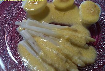 C'est la pleine saison des Asperges, jusqu'au mois de Juin ... Que ce soit des Blanches, des Violettes ou des Vertes toutes les Asperges aiment la Sauce Hollandaise ... Le légume est light, il compensera les calories de la sauce ... L'astuce pour réaliser cette sauce et la réussir : c'est le bain marie, ce qu'il faut également savoir sitôt prête sitôt servie, sinon elle peut légèrement attendre mais toujours au bain marie ... La difficulté de cette Sauce est de réussir l'émulsion des éléments entre eux, ceux ci n'étant pas miscibles entre eux (les gouttelettes du beurre ne pouvant se mélanger à l'eau).