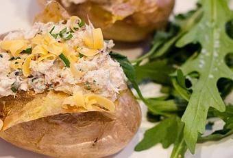 Répartir cette farce dans les pommes de terre.