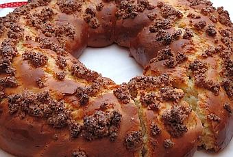 10. Torsadez-les ensemble puis formez une couronne. Placez-la sur une plaque recouverte de papier de cuisson, couvrez la brioche et laissez-la lever au moins une heure.