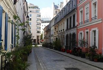 Les maisons aux façades colorées nous plongent dans une ambiance nordique très décalée. Pourtant nous sommes juste à côté de la Gare de Lyon. Cette rue piétonne, très rare dans Paris, est très paisible, c’est le royaume des chats. Admirez aussi la glycine, en trompe l’œil.