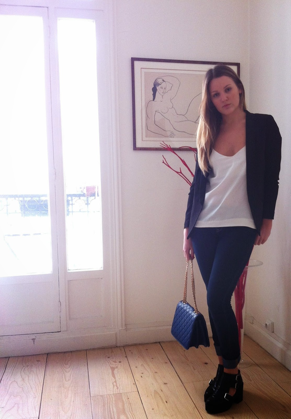 A mes yeux, c'est la tenue d'entre-deux saisons idéale: on n'est pas encore prête à montrer nos gambettes mais on dévoile un peu de peau avec un top fluide et des chaussures à découpes.