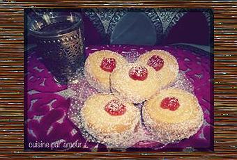 les enduire de confiture sur une seule face et les coller par paires , rouler chaque extrémité de biscuits dans la noix coco râpé .