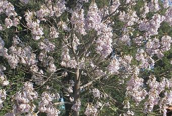 Les fleurs couleur lilas clair ,mellifères , ont une odeur de violette et ressemblent à celles du catalpa ou de la digitale mais elles sont en panicules apparaissant avant les feuilles.
