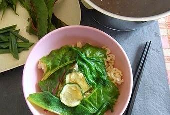 Dans mon jardin, de belles feuilles vertes commencent à bien pousser. J'ai l'habitude de les cuisiner à la chinoise ou au tahin ou en tartes ou en gratin, etc. Et, d'un coup, je me suis dit, pourquoi pas une fondue japonaise ?
