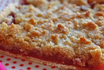 5- Parsemez la tarte de pâte à crumble, enfournez environ 25 minutes à 180°C, il faut que le dessus soit bien doré !