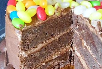 Sur un socle cartonné, déposez un tout petit peu de crème au beurre et posez votre 1er cake dessus pour le fixer.Recouvrez le de crème au beurre, puis déposez le 2nd cake.Pareil pour le 3ème.Ensuite recouvrez l'ensemble et laissez durcir au frais avant de pouvoir lisser.Vous pouvez laisser tel quel ou recouvrir de pâte à sucre.Moi j'ai déposez plein de bonbons car ici on est drôlement gourmand^^