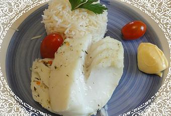 Ingrédients : 2 dos de cabillaud - court-bouillon - un paquet de riz tilda pure basmati