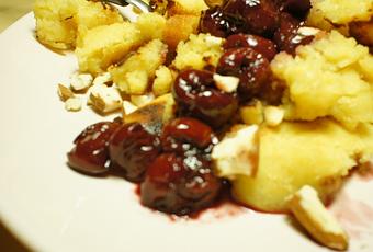 Il y a à Berlin un petit restaurant où l’on peut déguster le meilleur kaiserschmarr’n que j’ai mangé. Il est si énorme qu’on peut facilement le manger à six, surtout après un plat copieux. Pour mon marmiton et moi, c’est un passage incontournable à chaque fois que nous visitons la capitale allemande. Imaginez donc cette assiette énorme, cette crêpe épaisse et moelleuse, les griottes tièdes qui apportent une petite touche acidulée, la douceur de la crème fouettée et le croquant des amandes….