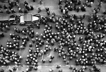 Overhead view of men wearing hats, New York City, 1930, a photo Margaret Bourke-White