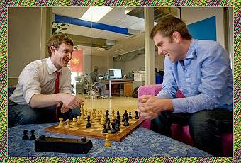 Le génial Mark Zuckerberg jouant aux échecs avec Chris Cox... Pas étonnant que le fondateur de Facebook soit aussi un bon joueur d'échecs. Il a déclaré lors d'une interview au New York Times, publiée le 16 avril, « Un milliard de personnes utilisent Facebook sur mobile, et c'est un business »