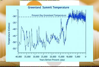 L’analyse d’un des auteurs, le Pr Bierman, Professeur de Geologie à l’Université du Vermont est que les températures mondiales promettent d’être bien plus élevées que celles connues durant les périodes interglaciaires les plus chaudes. Et que si la couche de glace du Groéland n’a pas disparu à l’époque, si le réchauffement se poursuit sur la tendance actuelle (voir courbe ci-contre), la calotte glaciaire ne survivra pas. Or la fonte de cette calotte, composée de plus d’1 million de km2 de glace produire assez d’eau pour élever de 7 m le niveau des mers.