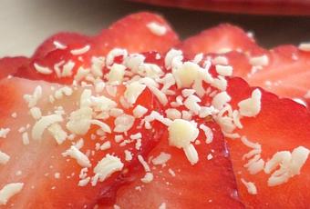 •Disposer les tranches de fraises selon vos goûts et votre imagination.