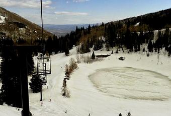 Il ne reste plus beaucoup de neige pour clôturer la saison, c'est une constatation que je peux faire ce dernier week-end de ski à Park City. Shadow Lake à Jupiter se montre à travers la neige, avec l'ombre de sa glace prête à casser ou à fondre .La neige est sale et disparaît vite. Une autre saison assez moyenne est en train de tirer sa révérence. Le ski était assez formidable aujourd'hui, mais je ne devrais pas écrire ça car le ski est toujours super, quelques soient les circonstances ...