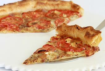 - Eponger le dessus des tranches de tomates avec du papier absorbant. Les disposer sur la tarte.