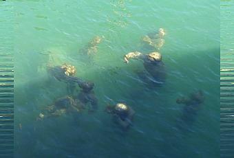 La sculpture visible au fond d’un canal de Copenhague, en plein centre-ville, montre le triton resté seul avec ses fils, le plus jeune étant dans ses bras (pas très visible sur les photos). Les huit personnages tendent les bras, attendant en vain Agnès, dans un profond désespoir.