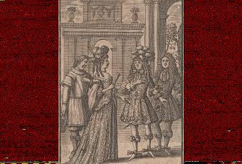 Photographie de gauche : Personnages possédant de nombreux éléments vestimentaires disponibles chez un clincailler. Gravure du XVIIe siècle de Jean Sauvé d'après un dessin de Pierre