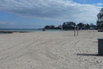 Klampenborg est une petite station balnéaire située à 10 km au nord de Copenhague (localisation). La plage de Klampenborg porte le nom bien français de "Bellevue". C’est une plage de sable très fin et très blanc, de largeur toujours égale puisque les marées sont quasiment inexistantes sur la Baltique (jamais plus d’un mètre).