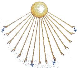 Néfertiti épouse d'Akhénaton. Bas-relief. On y voit bien les petites mains des rayons solaires du nétèr Aton. Akhenaton et sa famille accomplissant une offrande pour le disque Aton. Musée du Caire. Les rayons d'Aton !
