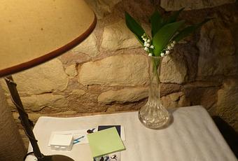 Dans le même temps, Claude est allé cueillir - pieds nus et en pyjama dans le jardin embrumé de pluie - les deux brins de muguet arrivés à pleine mâturité pour l'offrir en porte-bonheur à Victoire et pour moi.