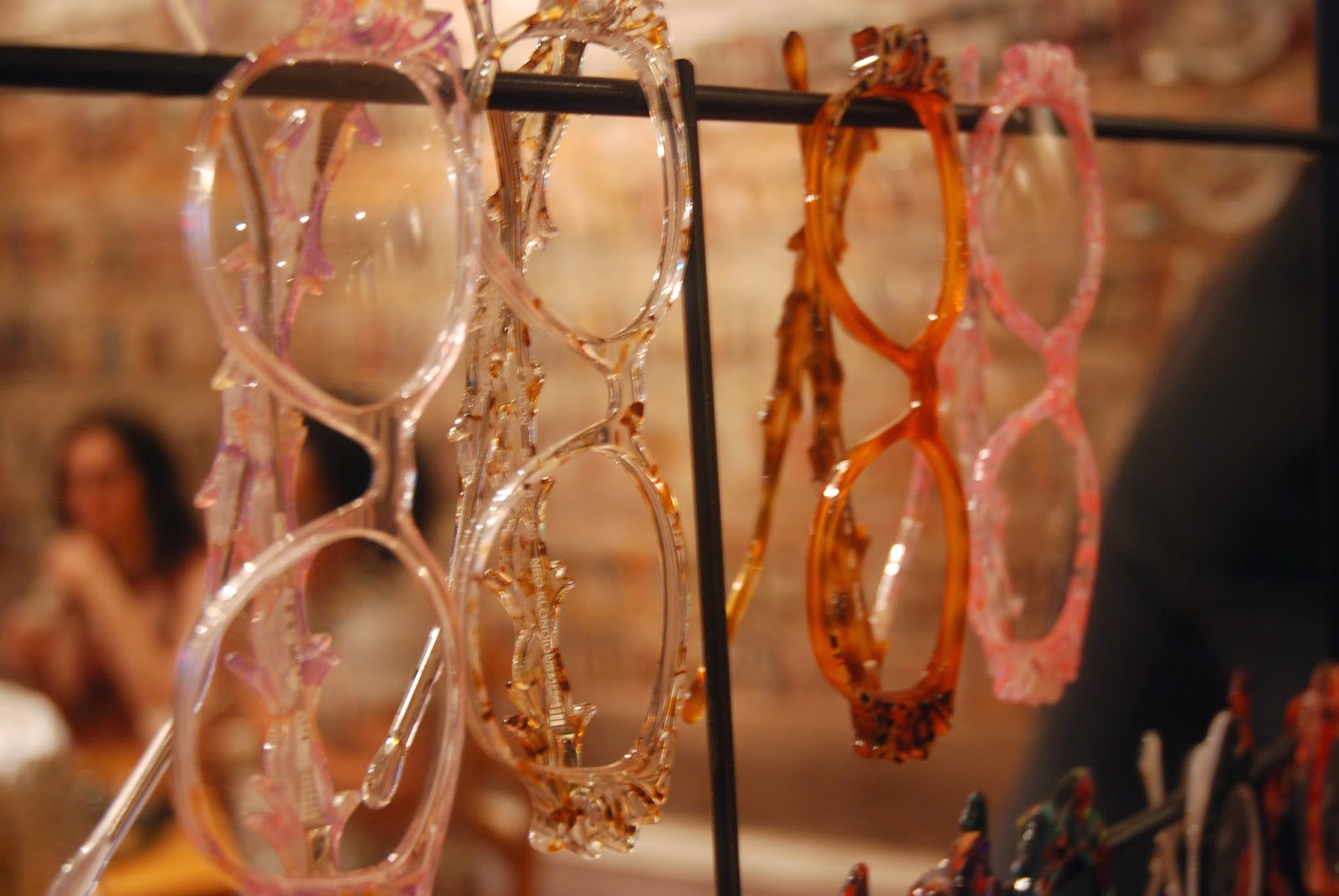 Ensuite, au son du violoncelle et du piano, nous pouvions nous balader à travers les montures et miroirs et ainsi découvrir l'univers éclaté de la Lunetterie Les Branchés. Plusieurs stylistes-visagistes étaient présentes pour offrir des choix personnalisés correspondant à notre type. Un choix qui harmonise les trois caractéristiques et particularités clés d'un visage : peau-cheveux-yeux. Un trio indispensable à considérer, selon Anne-Marie Faniel, la créatrice et copropriétaire.Avant-goût de la prochaine collection !