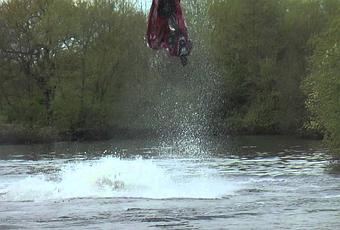 Ant Burgess n’est pas le champion du monde de jet ski freestyle pour rien et il l’a prouvé il y a quelques jours au lac Kingsbury (Montana, Etats-Unis). Au guidon de son bolide survitaminé à 50 000 dollars, il réalise des figures incroyables en servant des vagues qu’il crée.