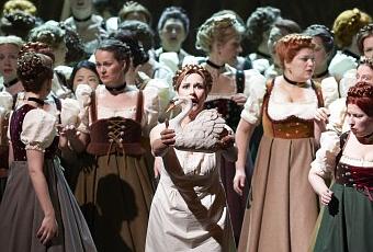 Des costumes uniformes, Lederhose, Dirndl, petits tabliers, poitrines avantageuses des dames : en bref tout ce qui fait le charme d’un petit village bavarois rêvé, un monde clos, isolé, fermé, où les conflits s’exacerbent, voilà le cadre posé.