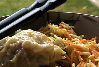 J'ai déjà fait des raviolis à la mode asiatique, toujours bons mais jamais aussi moelleux que je l'aurais souhaité... Ceux-ci sont parfaits en texture (grâce aux légumes) et très parfumés ! Nous avions prévu une petite sauce pour les accompagner mais ils se suffisent à eux-même :)