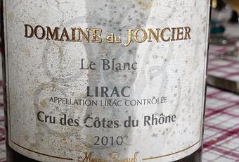 Commençons par un Lirac, Le Blanc 2010, domaine du Joncier (Marine Roussel) : très belle impression au nez, avec une association floralité et gras élégant, le tout associé (déjà) à des notes d'amers nobles. En bouche, le vin est corpulent, presque masculin, glycériné, très sudiste dans sa construction, avec toutefois une belle acidité et des amers nobles liés au Bourboulenc. Grande persistance tapissant le palais en finale, toutefois très traçante. Excellent
