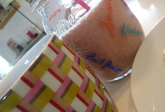 Ma pause sucrée du jour... un smoothie au moment du brunch ! Un smoothie accompagné de quelques pancakes maison ! Un smoothie servi dans un des "Mason Jar" créé et offert par Delphine ! Le tout servi avec un thé dans un des jolis mugs, aux graphismes et couleurs comme je les aime, offert par Emmeline (Qu'il est doux de passer l'échéance annuelle ainsi gâtée !)