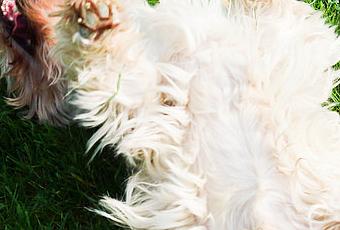 On a freshly mowed lawn, one of his greatest pleasures is to roll himself in the grass and to be chased. The photo is of course one related to the first activity and shows you a bunch of more or less white shaggy hair. For those who have not yet crossed him on this blog, know that he is a Westie. ;)