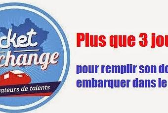 Attention, il ne vous reste plus que 3 jours pour faire partie des 50 graines d'entrepreneurs qui embarqueront dans le train de Ticket for Change du 26 Août au 6 septembre 2014 prochain !Ticket for Change est un programme de leadership où, du 26 Août au 6 Septembre 2014, 50 graines d’entrepreneurs iront à la rencontre des pionniers qui inventent l’économie de demain et «osent la France».