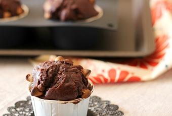 Donc voici sa recette de muffins double chocolat qui contre toute attente se sont avérés peu sucrés! Enfin juste ce qu’il faut! Pour casser un peu le gout chocolaté j’ai juste rajouté des pépites de beurre de cacahuètes Reeses qu’il me restait de mon dernier voyage aux US.