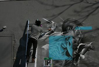 Voici une des dernières réalisations du graffeur new-yorkais Aaron Li-Hill. Spécialiste des portraits en mouvement, il s'est ici inspiré des joueurs de ping-pong, et de leur rapidité d'exécution pour transmettre une impression de vitesse.