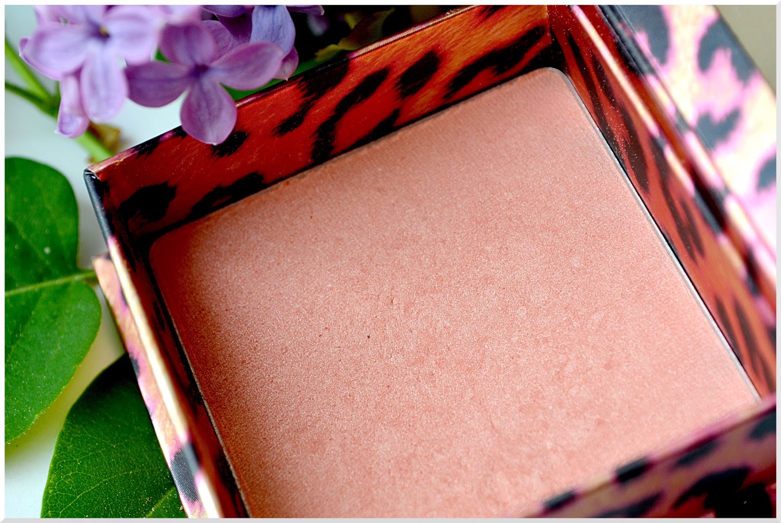 Couleur : comme vous pouvez le voir, c'est un corail clair et assez orangé, avec une multitude de reflets et de légers irisés dorés.Texture : c'est un blush poudre assez compact, qui ne fait pas (ou très peu) de chutes lors de l'applicationPigmentation : pas de risque de vous tromper avec ce blush, la pigmentation est là sans être dingue ce qui le rend très modulable. A l'aide d'un pinceau (le Blush Brush d'ELF pour moi, pinceau à petit prix que j'adore) je prélève petit à petit de la matière que j'applique par de légers mouvements circulaires jusqu'à la couleur désirée. J'aime : sa couleur si particulière qui vous donne bonne mine en quelques coups de pinceau et qui est encore plus jolie sur une peau légèrement halée. Les micro-nacres qu'il contient permettent aussi de zapper l'étape de l'highlight si vous n'avez pas le temps car il illumine également le visage tout en légèreté.Je boude : son prix, plus de 30€ tout de même mais que voulez-vous, c'est du BENEFIT...