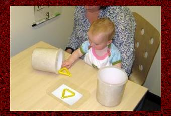 · sur une seconde expérience, la capacité à créer une idée mentale du jouet cible en le cachant de la vue des enfants, les 2 jouets étant placés dans des contenants opaques,