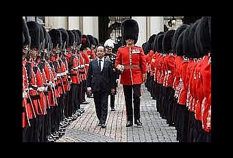 Au bout d'une heure, il se lève et s'approche du Garde Républicain :