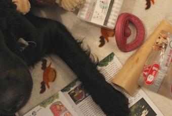 Woufbox m’a contactée pour que Güzel puisse tester une box ! (Il n’a pas dit non). J’ai reçu la box une semaine après avoir informé Woufbox de la race, de l’âge, de la taille de Güzel. Dans sa box, il y avait des cotons tiges pour animaux, des filets de poulets de la marque 8in1 partenaire de Woufbox (produit phare de la box de ce mois-ci), un lapin (trop mignon), un énorme os avec de la viande dedans, un jouet, et le Woufmag avec des conseils etc.